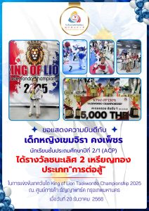 ขอแสดงความยินดีกับ เด็กหญิงเขมจิรา คงเพ็ชร นักเรียนโรงเรียนสามชัยวิเทศศึกษา