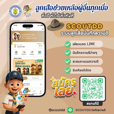ระบบบันทึกความดีช่วยให้คุณสามารถบันทึกกิจกรรมดีๆ ได้ง่ายๆ เพียงแค่แอดไลน์ @scoutdd และกดปุ่มบันทึกความดี โดยระบบจะรวบรวมและแสดงผลข้อมูลอย่างเป็นระบบ