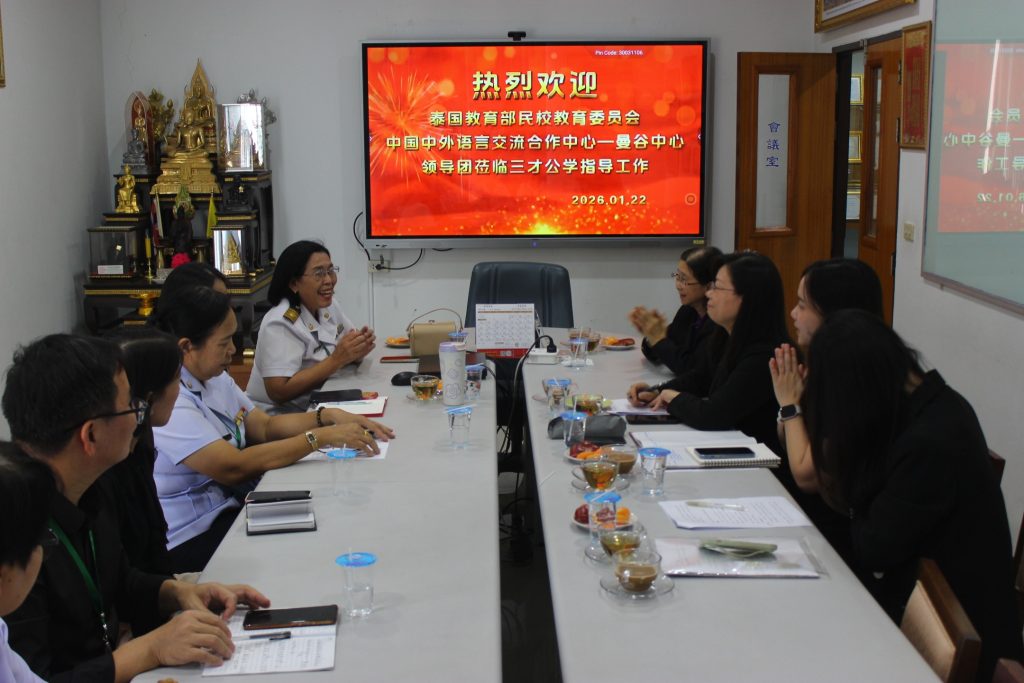 2026年1月22日,泰国教育部民校教育委员会(สช.)与中国中外语言交流合作中心(语合中心)曼谷中心领导团莅临三才公学,对中国志愿者教师的教学工作进行联合督导考察。三才公学校方领导层及全体志愿者教师对代表团的到访表示热烈欢迎。