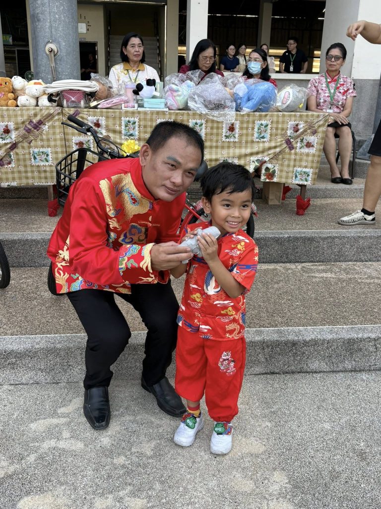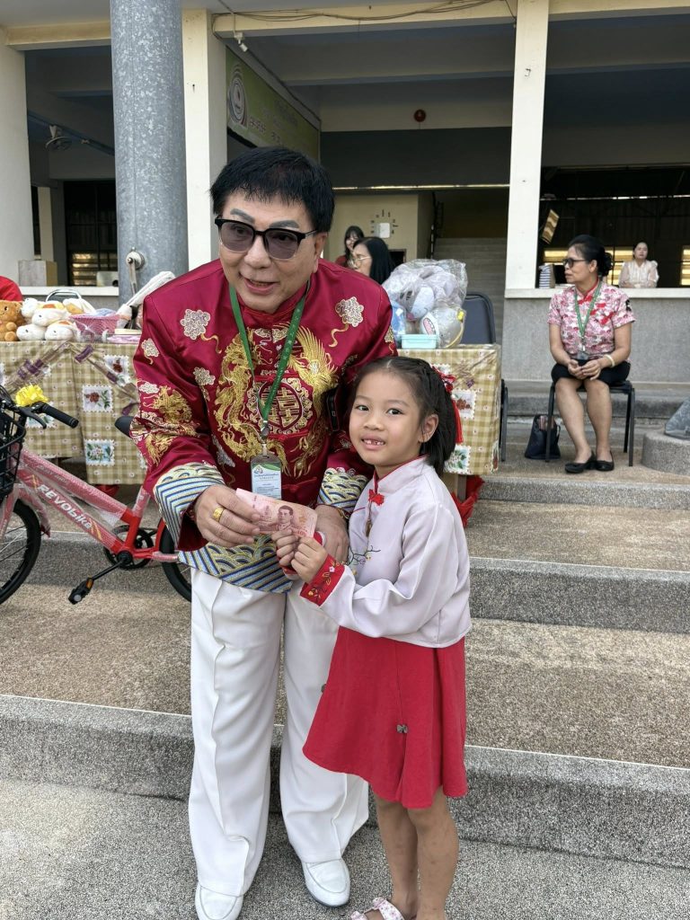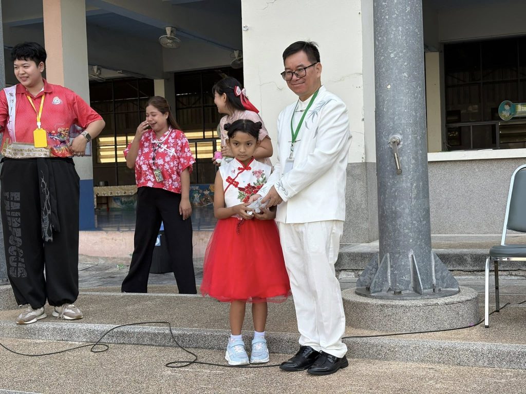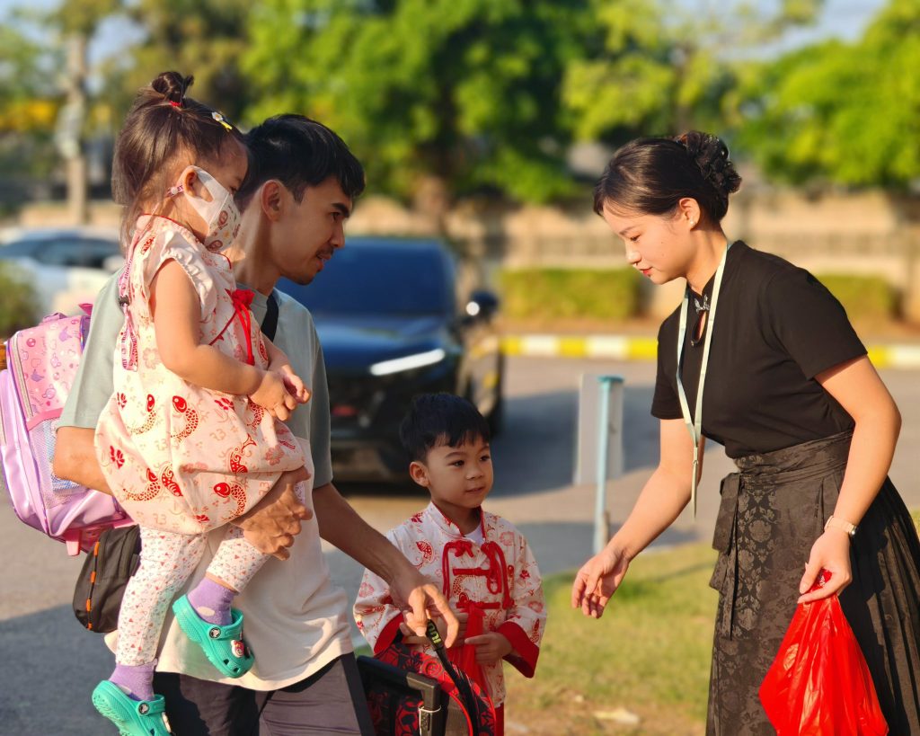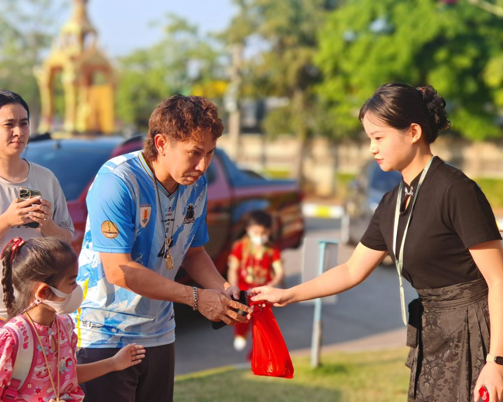 ช่วงเช้าได้มอบส้มมงคล ให้กับผู้ปกครอง เพื่ออวยพรให้โชคดี มีความสุข และมั่งคั่งตลอดปีใหม่จีน
