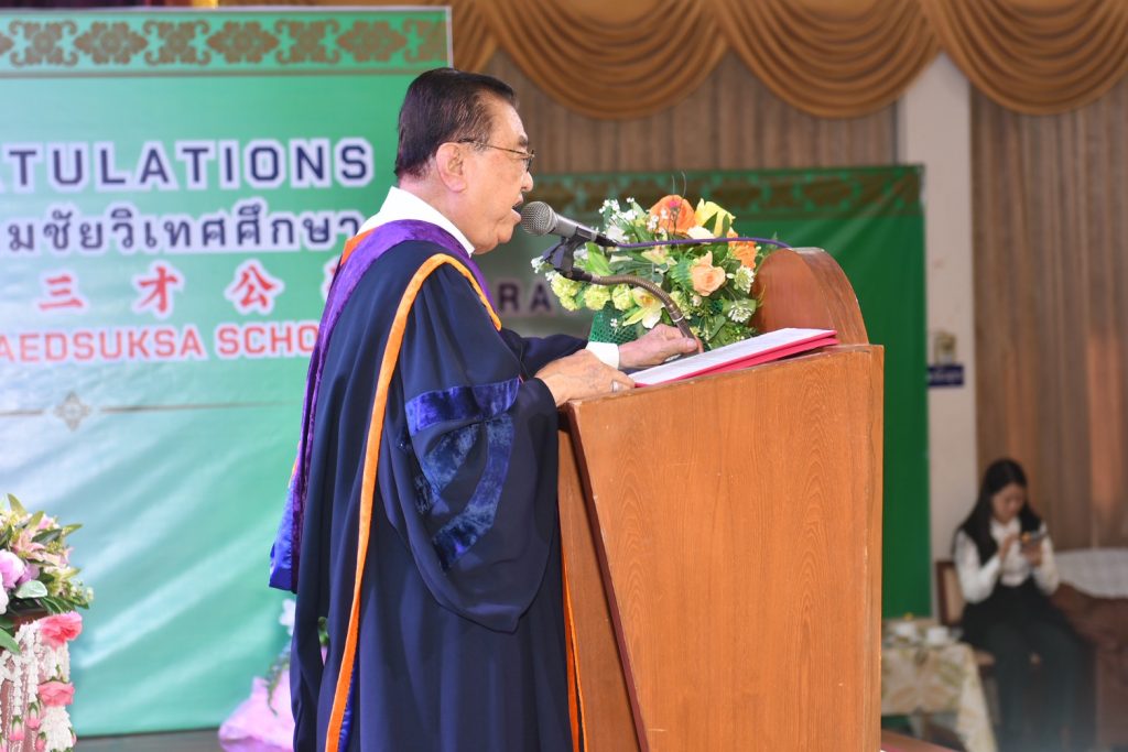 “ความสำเร็จในวันนี้เป็นอีกก้าวหนึ่งของชีวิต ขอให้นักเรียนทุกคนภาคภูมิใจในความพยายามของตนเอง และตั้งใจศึกษาต่อในระดับที่สูงขึ้น มีความมุ่งมั่น อดทน และเป็นคนดีของสังคม เพื่อนำความรู้ไปพัฒนาตนเอง ครอบครัว และประเทศชาติในอนาคต”