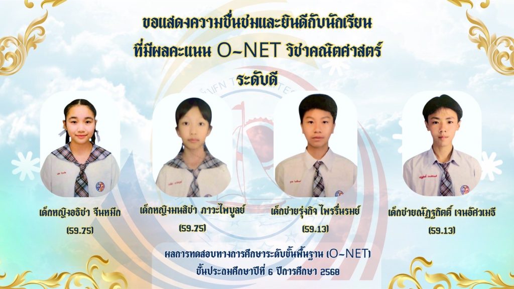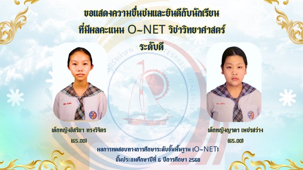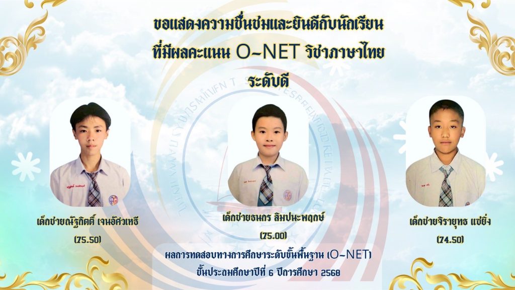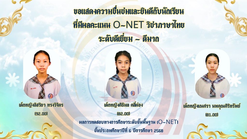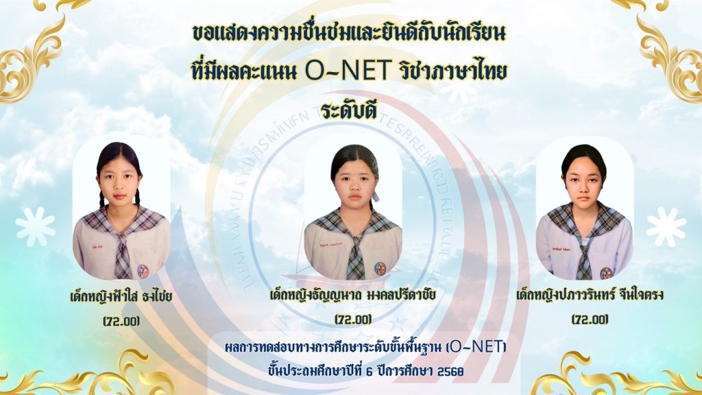 ที่มีผลการทดสอบทางการศึกษาระดับขั้นพื้นฐาน (O-NET) วิชาภาษาไทย อยู่ในระดับดีเยี่ยม และระดับดี